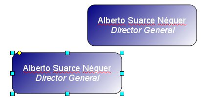 - Si todas las formas que vamos a crear para las distintas personas del organigrama van a ser iguales, aunque difieran en tamaño, lo más cómodo es Copiar y Pegar la primera. Ya debes saber que el atajo de teclas para Copiar es Ctrl+C y para Pegar Ctrl+V. Si seleccionas el primer rectángulo y copias y pegas, en realidad se quedará aparentemente igual, pero lo que has hecho es pegar un rectángulo idéntico encima del otro. Si seleccionas el rectángulo cuando el puntero del ratón adopte la forma de 4 flechas en cruz, podrás pinchar y arrastrar esa autoforma al sitio que desees. Solo se trataría de que volvieras a hacer doble clic sobre el nuevo rectángulo y cambiaras el texto por el del nuevo componente del organigrama.