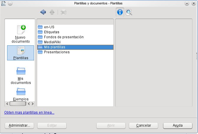 Si elegimos la segunda opción, la de guardar el documento en Mis Plantillas tendremos disponible la plantilla al elegir Archivo>Nuevo>Plantillas y Documentos.