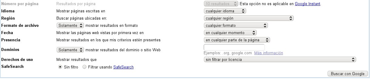 Terminemos de analizar las opciones avanzadas de búsqueda de Google.