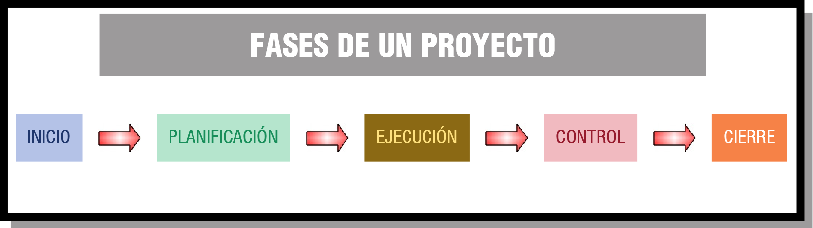 A finales de los años 60 se creó en Estados Unidos el Project Management Institute (PMI, Instituto de Gestión de Proyectos) para impulsar una determinada metodología a la gestión de proyectos. En la metodología de este organismo se determinan 5 grupos de procesos de gestión del proyecto: