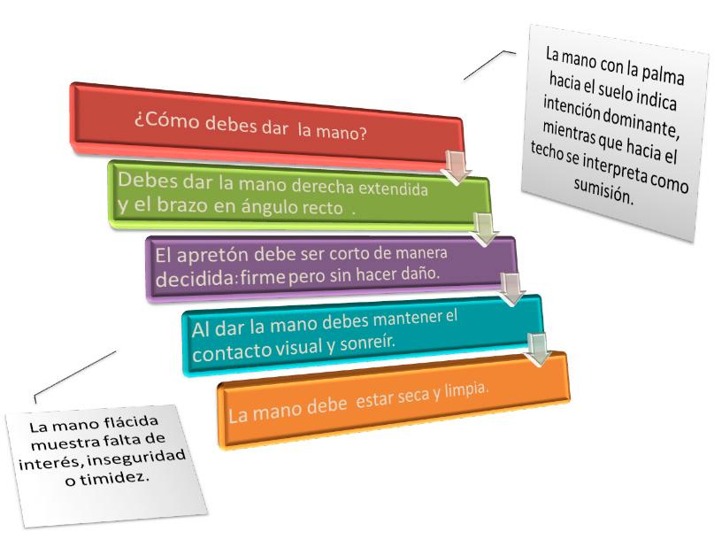 - El apretón de manos es el saludo al encontrarnos y al despedirnos.
