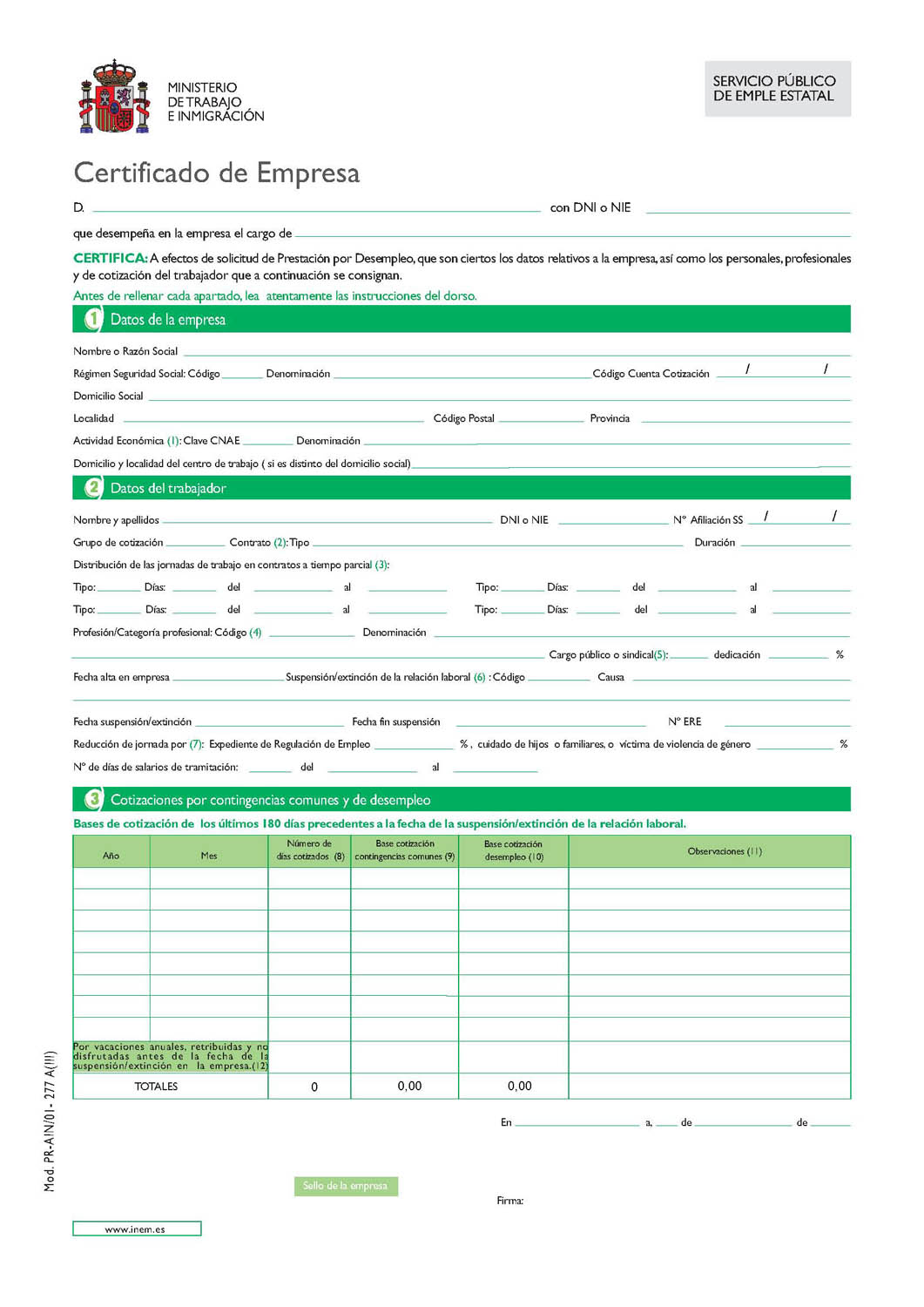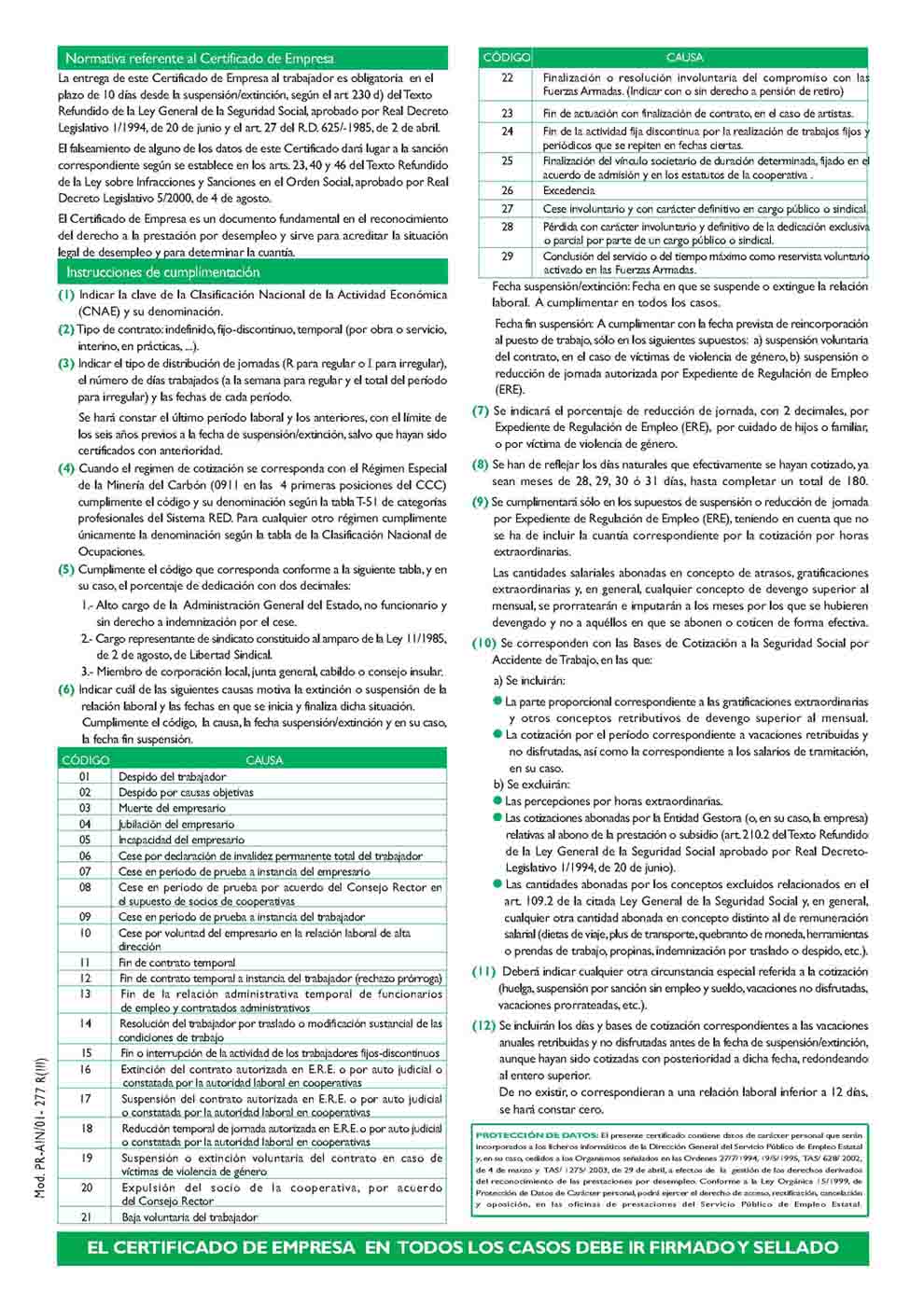 En estos casos es necesario que la empresa les expida un documento, llamado certificado de empresa, para que puedan tener acceso la prestación por desempleo, sirviendo, además, para acreditar la situación legal de desempleo del trabajador y determinar la cuantía que deberá cobrar por este concepto.
