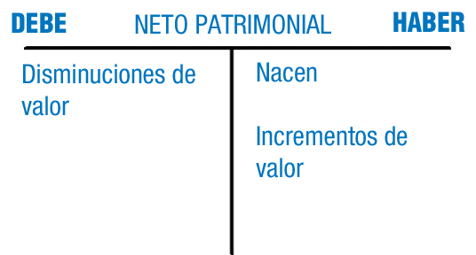 | Cuentas de patrimonio neto: nacen generalmente por el haber, incrementan su valor por el haber, y disminuyen por el debe. Generalmente su saldo es acreedor o cero. | |