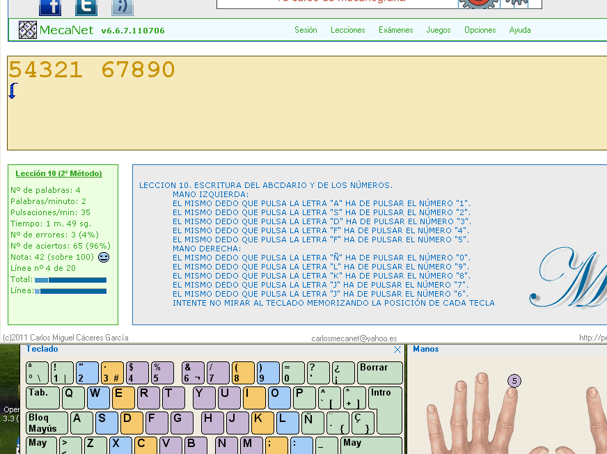 Realiza los ejercicios MecaNet de la fila normal. Método 1 lecciones de la 4 a la 9 .